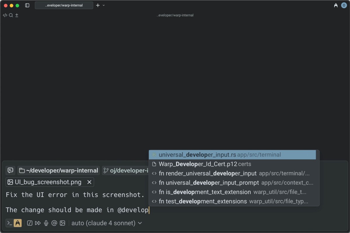 Warp makes it easy to write good prompts. Reference files and images in your prompts and even use voice transcription from Wispr Flow.