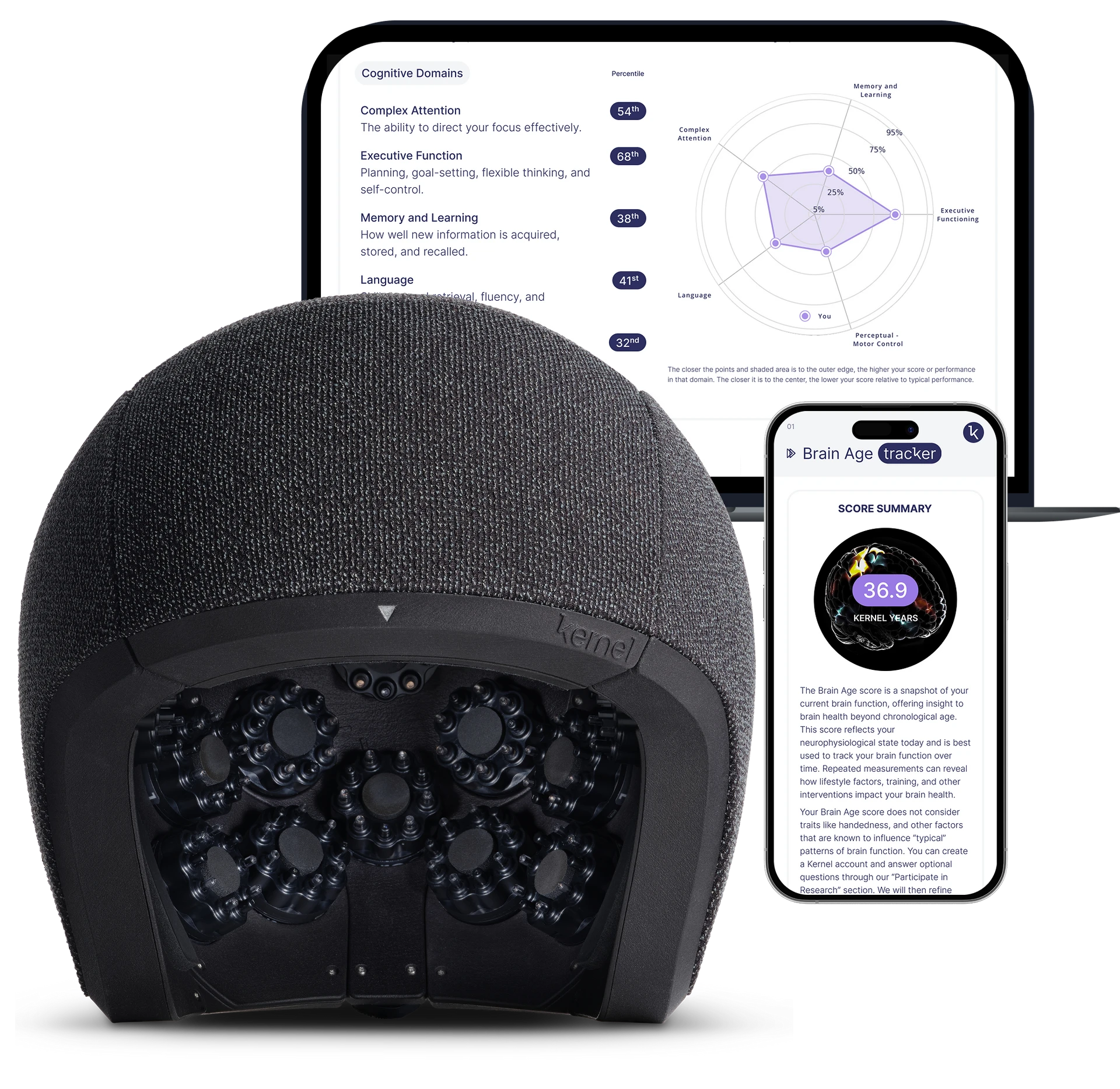 Learn more about the technologyKernel delivers detailed information about brain function by combining our non-invasive brain measurements with algorithmic advances. You can now reliably track the performance of your brain.